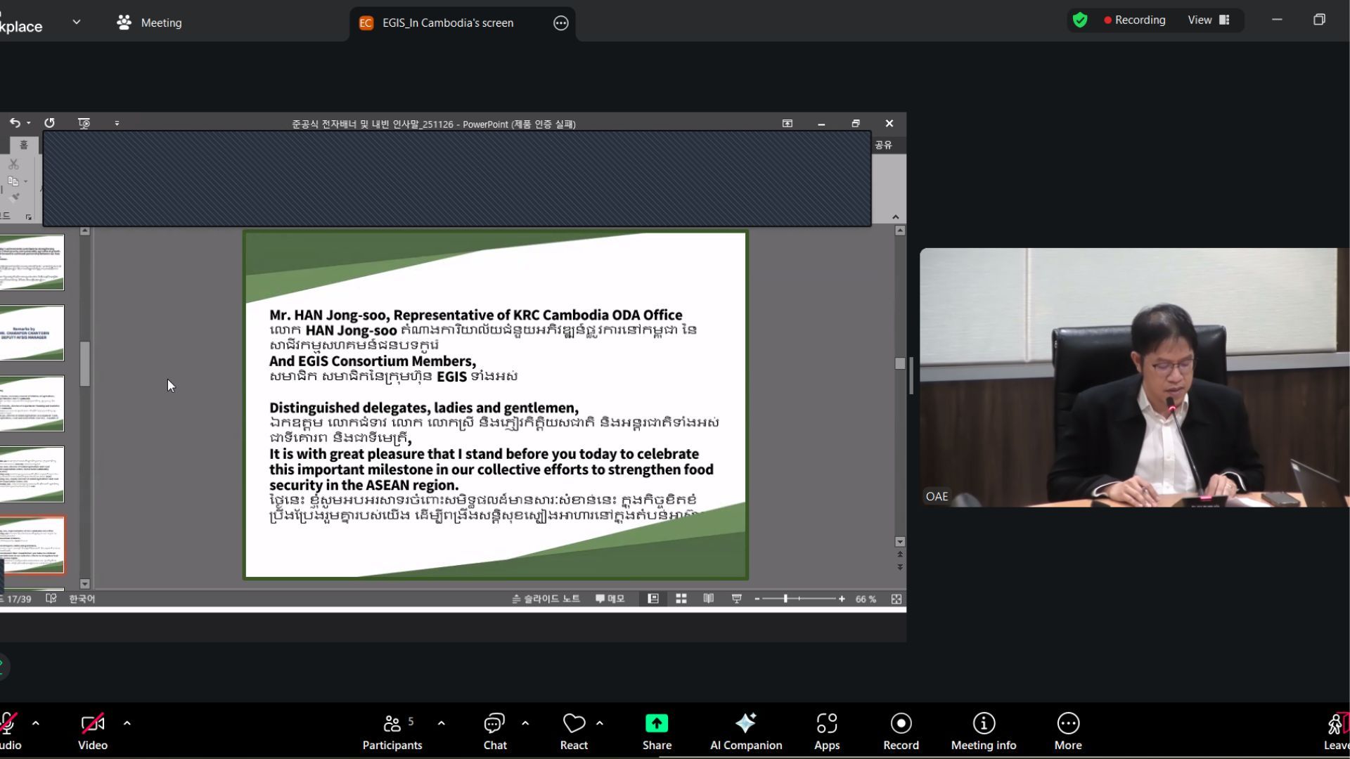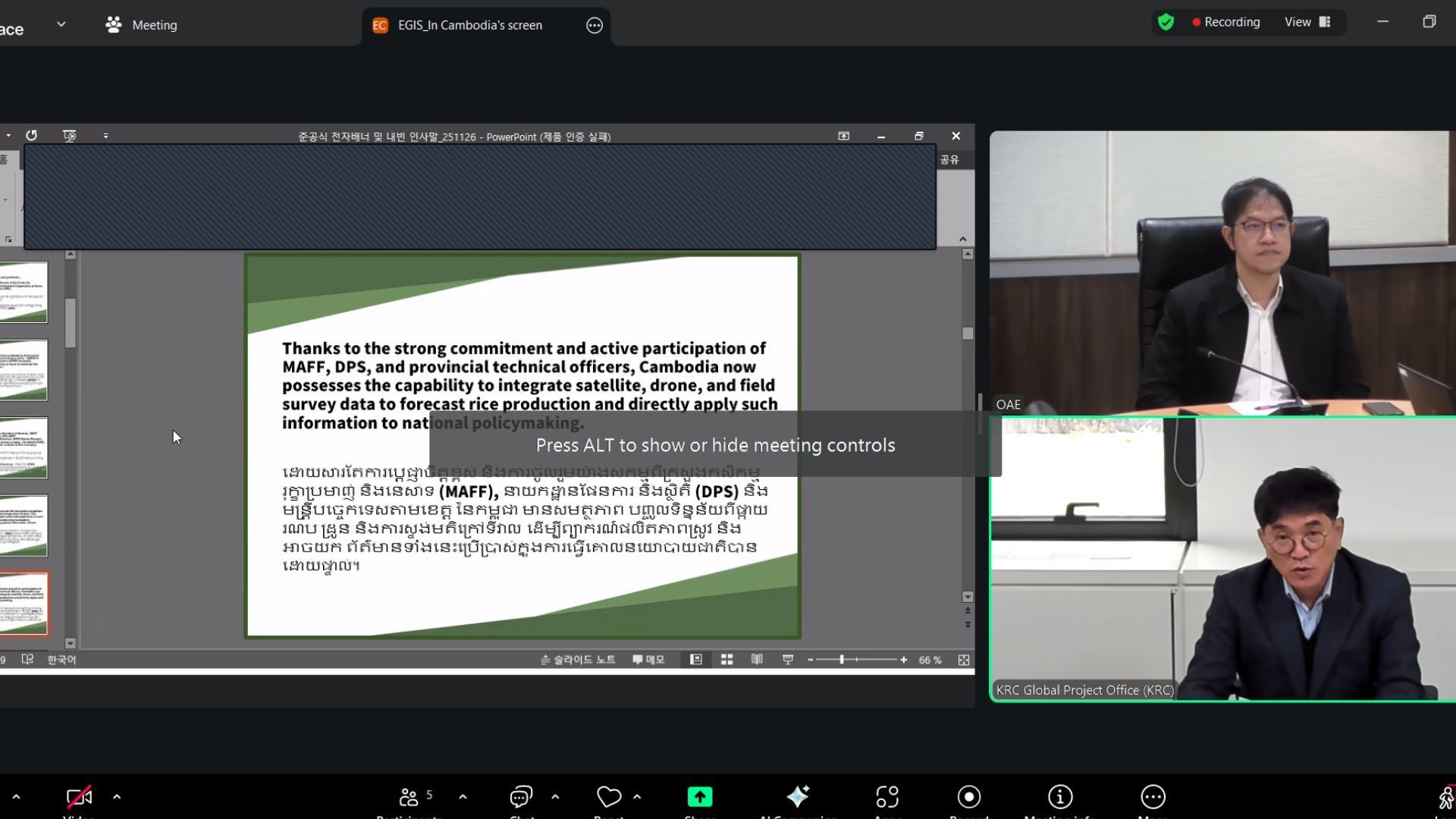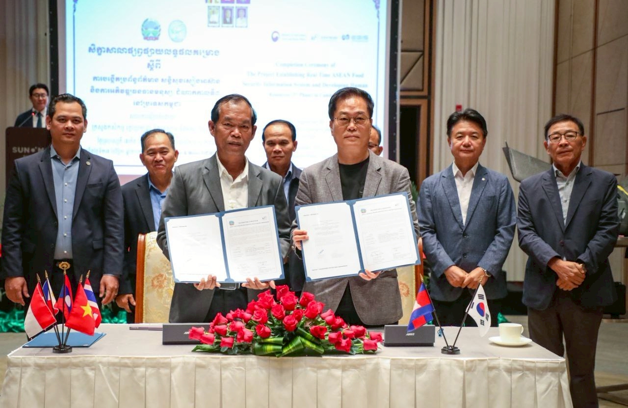 On 27 November 2025, Mr. Charapon Chantorn, Deputy AFSIS Manager, participated in the Completion and Handover Ceremony of the project “Establishing the Real-Time ASEAN Food Security Information System (AFSIS) and Development of Human Resources, Phase 3 – Pilot Project on Strategic Crop Forecasting System for Food Security in Cambodia.” The ceremony was held in Phnom Penh, Cambodia, and jointly hosted by the Ministry of Agriculture, Food and Rural Affairs (MAFRA) of the Republic of Korea, the Ministry of Agriculture, Forestry and Fisheries (MAFF) of Cambodia, and the Korea Rural Community Corporation (KRC).