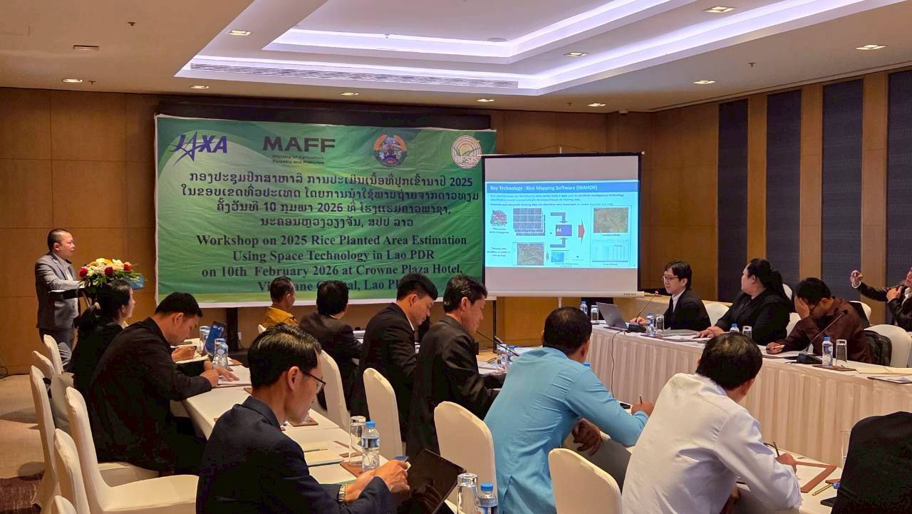 The In-Country Workshop on Promoting Rice Planted Area and Production Estimation Using Space-based Technologies in Lao PDR was jointly organized by the AFSIS Secretariat, the Japan Aerospace Exploration Agency (JAXA), the Ministry of Agriculture, Forestry and Fisheries (MAFF), Japan, and Ministry of Agriculture and Environment (MAE) under the Project for ASEAN Food Security Information System – Geospatial Informalization System (AFSIS-GIS) and the Space Applications for Environment (SAFE) Project. The event was held in Vientiane, Lao PDR, with a hands-on training session on 9 February 2026 and a workshop on 10 February 2026.