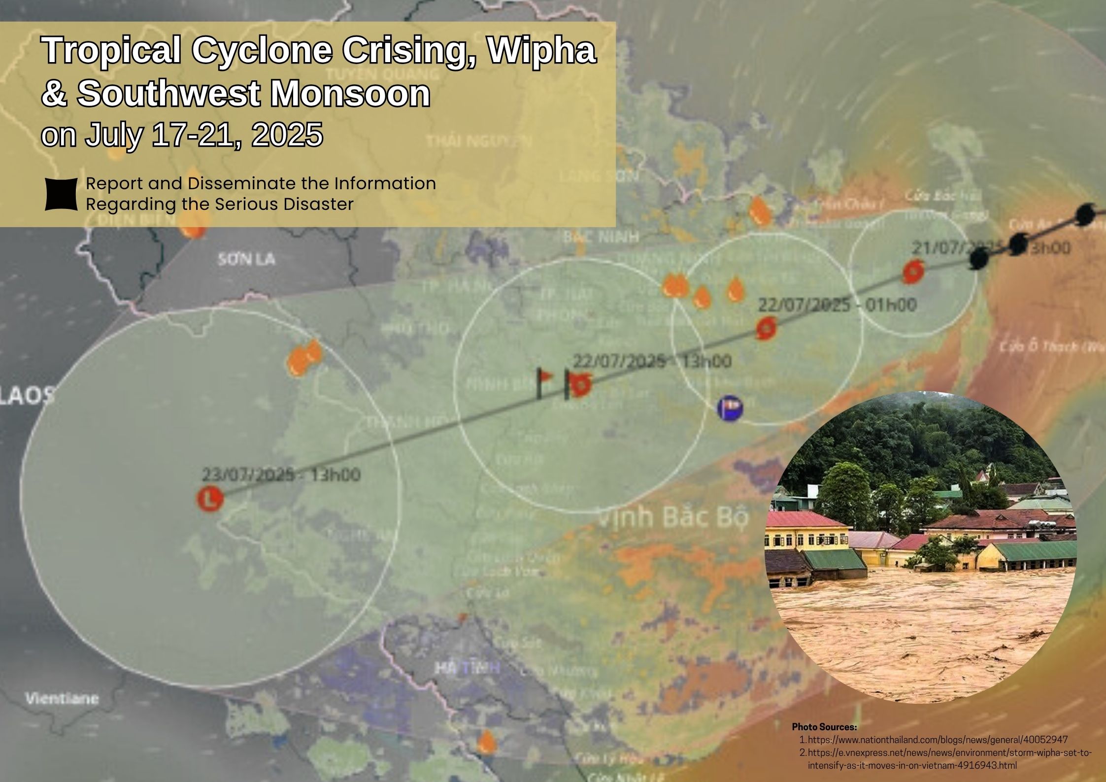 From July 17–21, 2025, Tropical Cyclones Crising and Wipha, along with the intensified southwest monsoon, caused widespread damage across Lao PDR, the Philippines, Thailand, and Vietnam. Governments in all four countries launched coordinated disaster response efforts, providing emergency aid, shelter, and support for recovery, though long-term impacts on livelihoods and food security remain a concern.