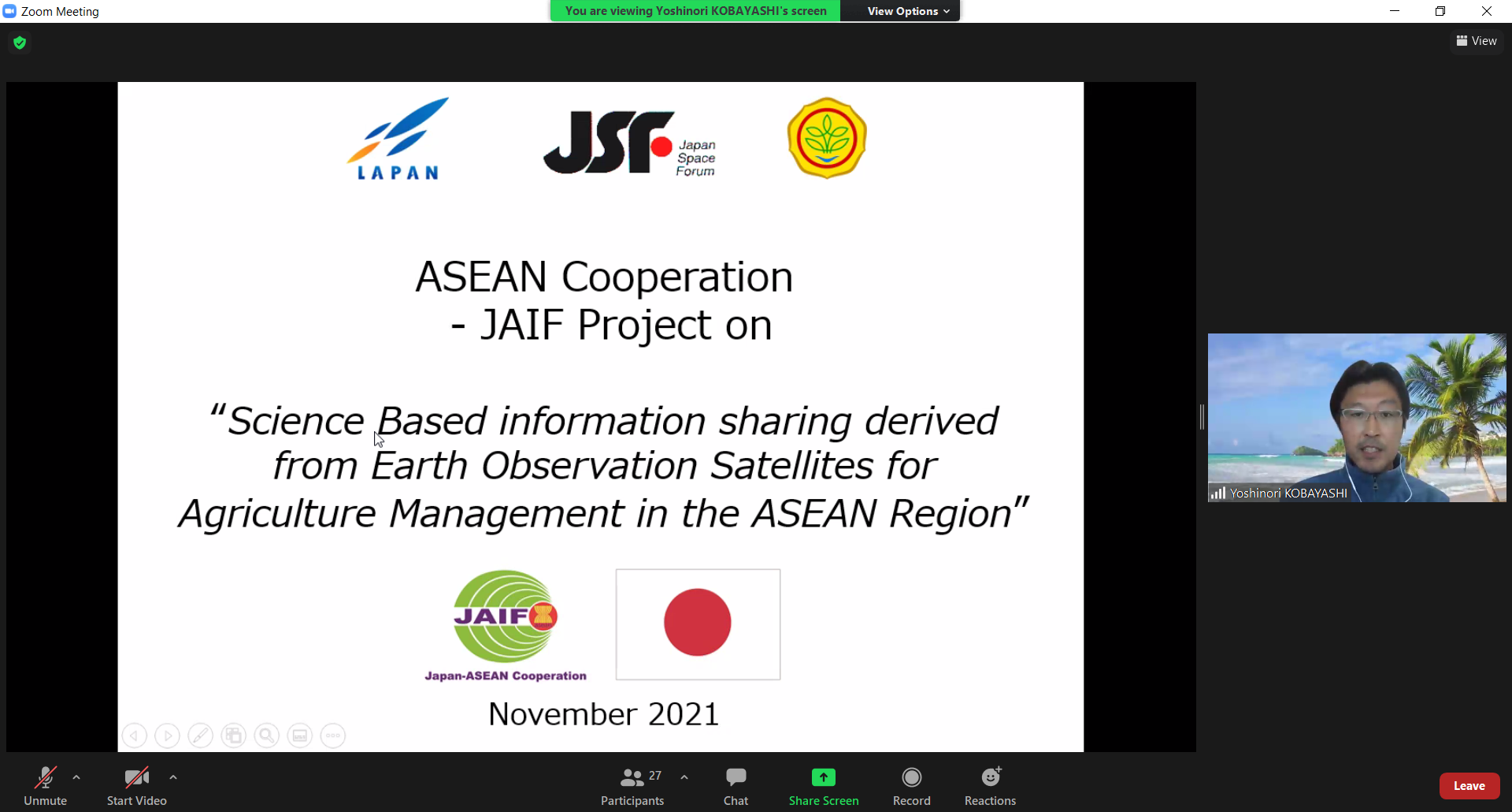 The Japan Space Forum (JSF) had conducted the 2nd Training Program under the ASEAN-Japan Project (JAIF Project): Science Based Information Sharing Derived from Earth Observation Satellites for Agriculture Management in the ASEAN Region on 24 November 2021 as an online training. The project is an initiative implementation under the purview of the Sub-Committee on Space Technology and Applications (SCOSA) of ASEAN Committee on Science, Technology and Innovation (COSTI) with the support from JAIF.