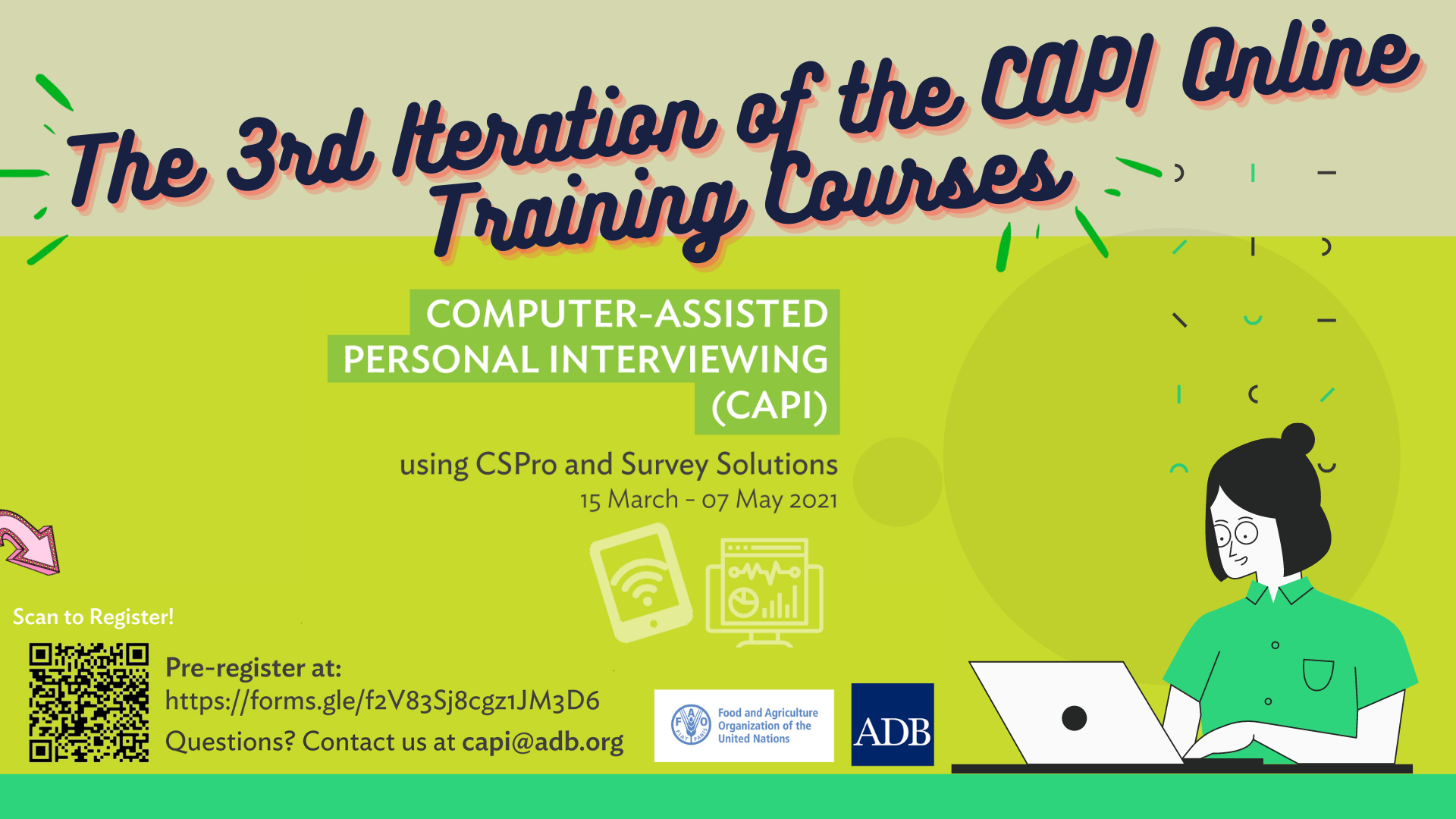 The 3rd iteration of the CAPI online training courses will now be conducted jointly by the Asian Development Bank (ADB) and the Food and Agriculture Organization of the United Nations-Regional Office For Asia and the Pacific (FAO RAP).